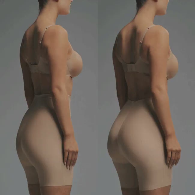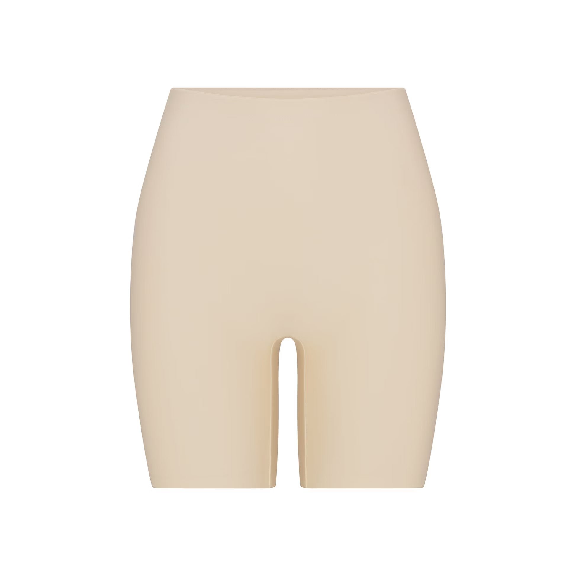 You won’t believe your butt. Designed in our signature SKIMS Body fabric, these mid-rise shorts feature mid-level compression fabric that smooths and shapes your waist and thighs. Updated with soft, built-in butt pads, this solution lifts and rounds your butt for a perkier shape and adds up to two inches of volume. Includes a closed gusset and raw cut leg opening.