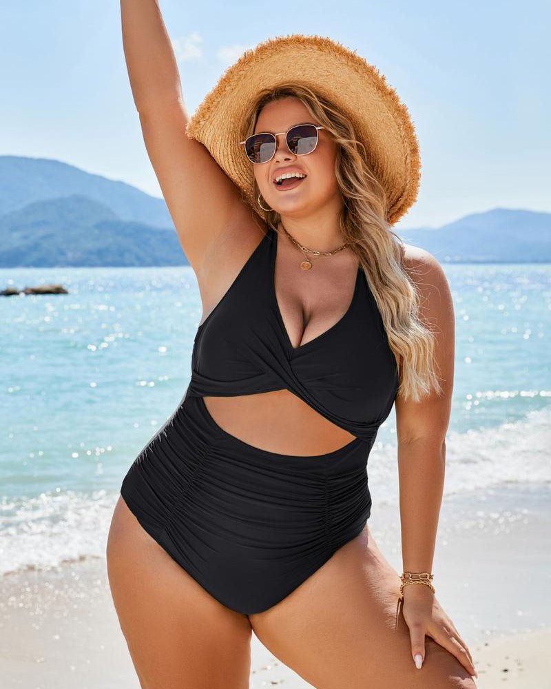 - Feature: Women's Slimming swimsuits feature with a sexy v neck, cutout design on front and back, adds a feminine style to this swimsuit. The adjustable spaghetti straps and criss cross self tie back are designed to adjust the swimsuit to the most comfortable fit.