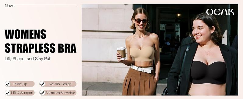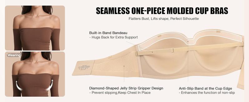 Womens Strapless Bras Wireless Non-Slip Tube Top Push Up Bralette Seamless Padded Bandeau Bra Everyday Convertible Bra